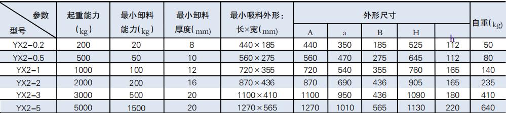 YX2 產品主要技術參數