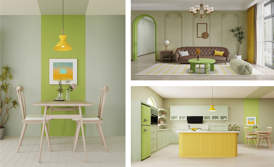 立邦2023中國色彩流行趨勢,以“碎金黃”作為主推色,在“萌動”的主題概念下,結合多款大眾消費者喜愛的暢銷色、設計師偏愛的個性色進行搭配,點亮家居生活空間中的色彩運用,刷新空間的生命力,就此不斷刷新美好生活。